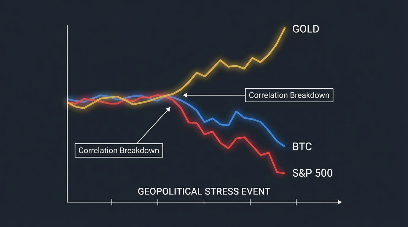 - The Divergence: On the same day Gold rallied, Bitcoin fell -3.8% and the S&P 500 dropped over 2%.This empirically dismantles the “Bitcoin is Digital Gold” narrative in times of acute geopolitical stress. Investors sought sovereign safety, not digital safety.
